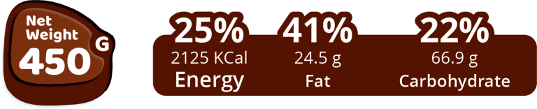 • MACRONUTRIENT CONTENT: Contains 24.5g fat, 66.9g carbohydrates, and provides 2125 Kcal of energy per 100g serving